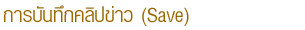 ผู้ใช้งานสามารถเลือกบันทึกคลิปข่าวเป็นไฟล์ เพื่อการนำมาใช้งานภายหลังได้โดยคลิกที่ Save ในหน้าต่าง File Download จะปรากฎหน้าต่าง Save As ขึ้น เพื่อให้ผู้ใช้ระบุ Folder ที่จะจัดเก็บคลิปข่าวได้